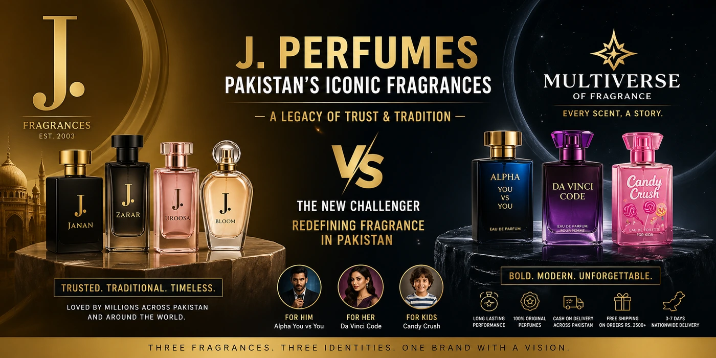 Explore the iconic J. Junaid Jamshed perfume collection loved across Pakistan. Discover top fragrances for men and women and compare them with modern, long-lasting alternatives from Multiverse of Fragrance.